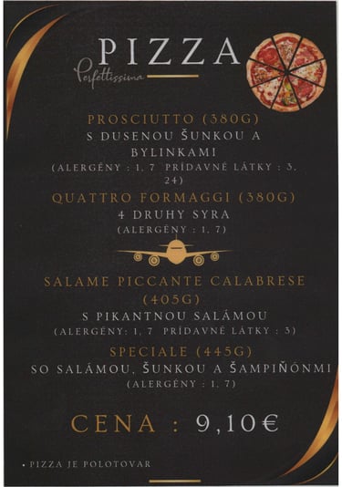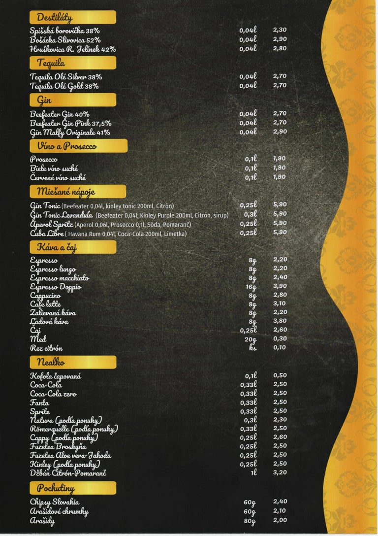 Nápojový a jedálny lístok